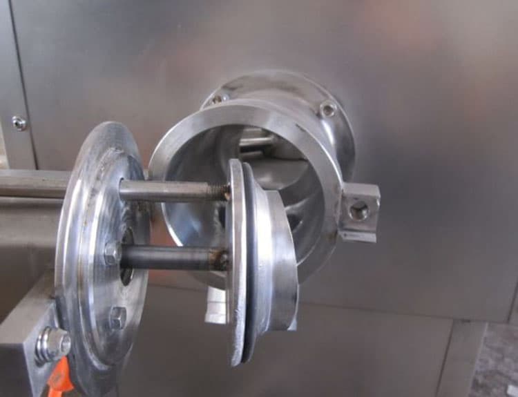 1、粉狀物料從錐形料斗上方進入物料鍋,待料斗關閉后在混合槳的攪拌下,粉料在容器內作旋轉運動,同時物料沿錐形壁方向變化,逐步生成液橋。在槳葉和筒壁對物料的擠壓、磨擦、捏合的作用下,物料逐步轉變為疏松的材質。然后,開啟出料門,濕顆粒在槳葉離心力作用下推動出料斗。